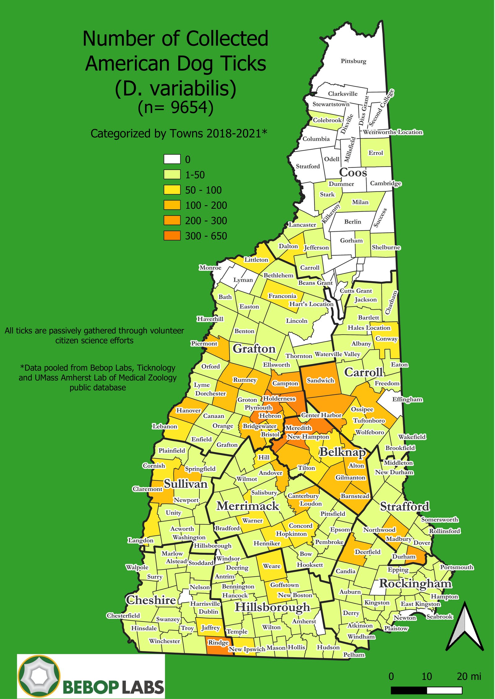 Below are interactive maps that reflect the data collected by BeBop Labs Click on the map to zoom in and find ticks near you.